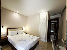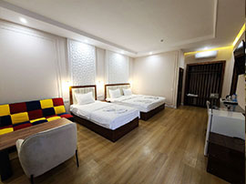 Experience the luxury of our Superior Double/Twin Room, boasting a generous layout with a large bed and a single bed. Revel in abundant natural light, high-speed WiFi, a large TV, coffee/tea amenities, a wardrobe, safe, refrigerator, and a window overlooking the garden. Unwind in the contemporary bathroom equipped with a shower and complimentary toiletries.